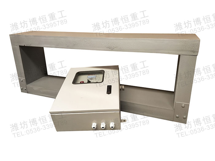 該金屬探測儀主要包括數控箱和傳感器兩大部分,采用先進的數字化處理技術,自動分析礦石的成分及品位,場效應補償,專用芯片數字電路,采用數字移相檢測、多頻率、多頻道技術,性能穩定,檢測靈敏度高,抗干擾能力強。在工礦企業有磁性(品位在70%的鐵礦石)或非磁性散裝物料帶式輸送及處理系統中,傳感器安裝在除鐵器和破碎機之間,能準確探測出混在物料中的各種金屬雜物如:鐵、鋼、錳鋼、不銹鋼、銅、鋁等。解決了長期困擾鐵礦、石礦等礦山企業用除鐵器無法批排出大塊鐵、鋼、錳鋼等對后端設備造成嚴重破壞的金屬這一問題。
